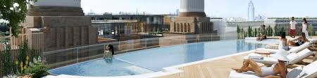 There is a new rooftop in town, Battersea Power station Art Hotel. It is places on 16th floor of the building and has amazing views over the Power Station and London. A perfect place to enjoy a drink on a sunny day. The bar is serving drinks and has an ope bar, tables and a swimming pool for the residents of the hotel. The water is warm, I checked it personally, it absolutely lovely.